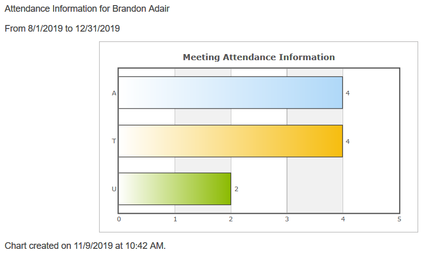| Student Attendance Totals Chart - Meeting - meeting attendance code totals for a student based on a date range. (screenshot) | 12/27/2019 |
