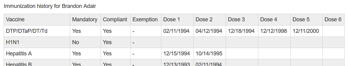 | Student Immunization History - immunizations for a student. Shows six doses by default but that can be changed in the SQL. (screenshot) | 12/27/2019 |
