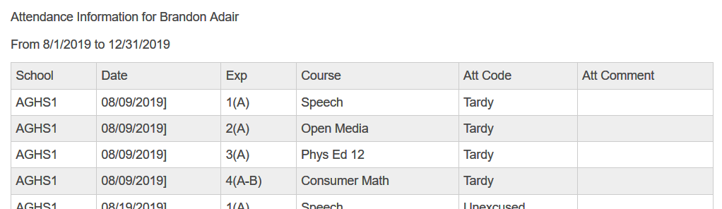 | Student Attendance - Daily - daily attendance information for students, including attendance comments. (screenshot) | 12/27/2019 |